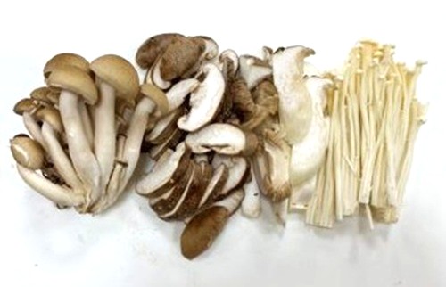 エリンギ・椎茸は2ミリ幅程度にスライスし、しめじ・えのきはほぐしておく。(市販のカットきのこでも代用可。)