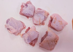 鶏もも肉を1枚ずつ6等分にカットする。