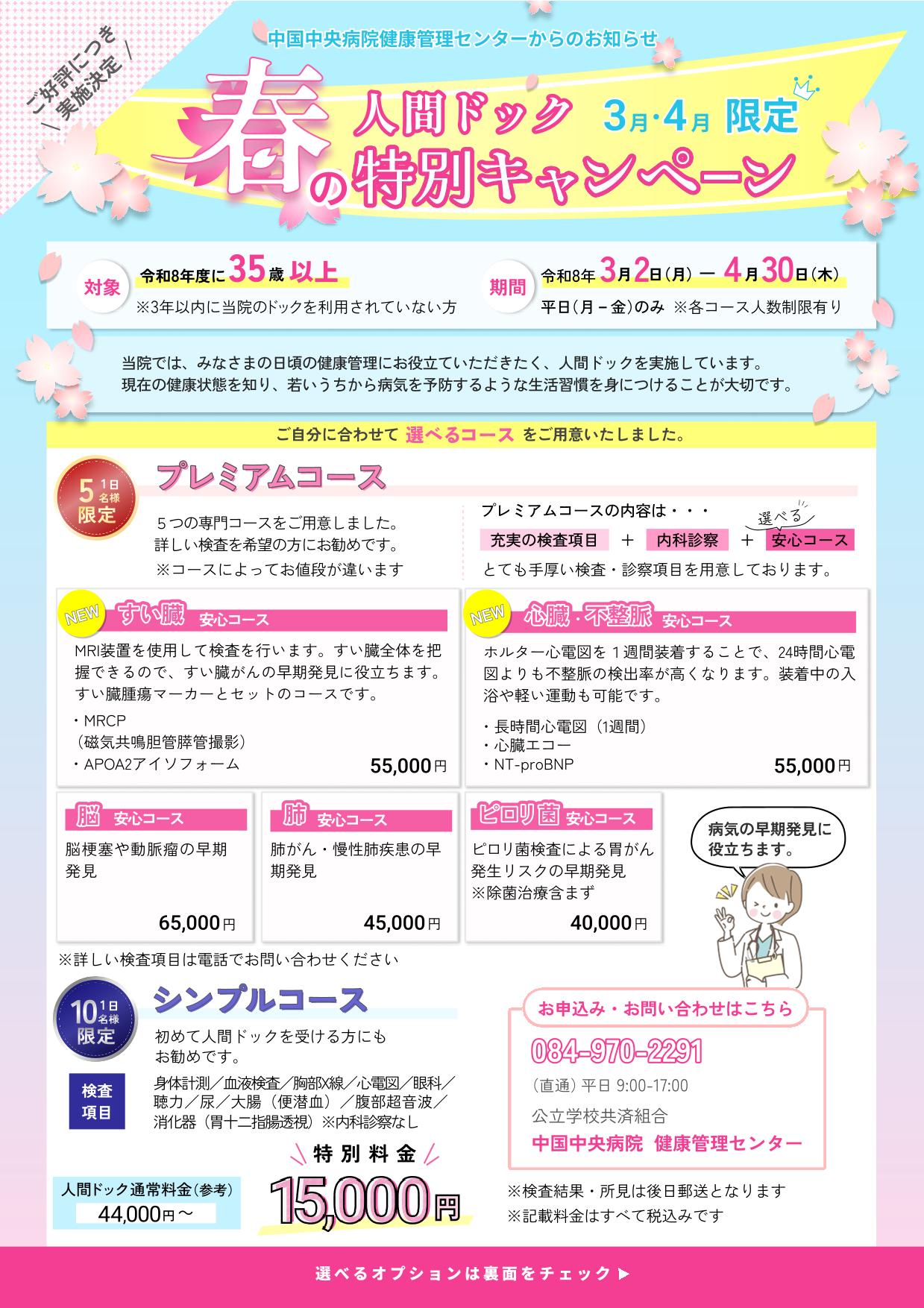 3・4月は比較的人間ドックが落ち着いているため、希望の日時で予約が取りやすく、待ち時間も少なくスムーズに検査が進みます。
