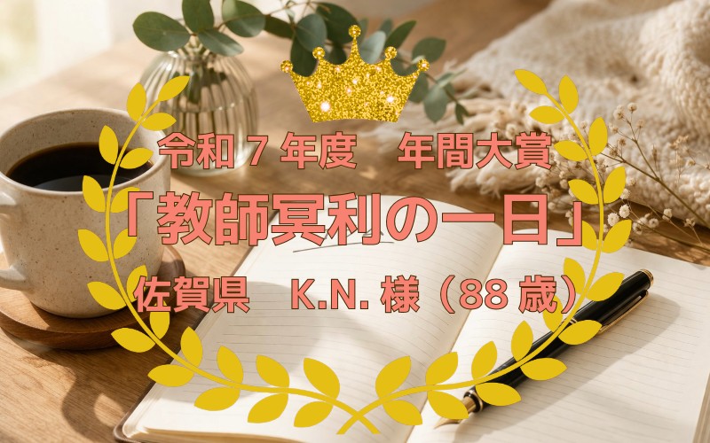 2026年3月31日令和7年度 「いきいき人生」年間大賞発表!! 令和7年度 「いきいき人生」年間大賞のコラムはコチラ受賞おめでとうございます。素敵なプレゼントをお贈りいたしますので、どうぞ楽しみにお待ちください。いきいき人生 友の会一同