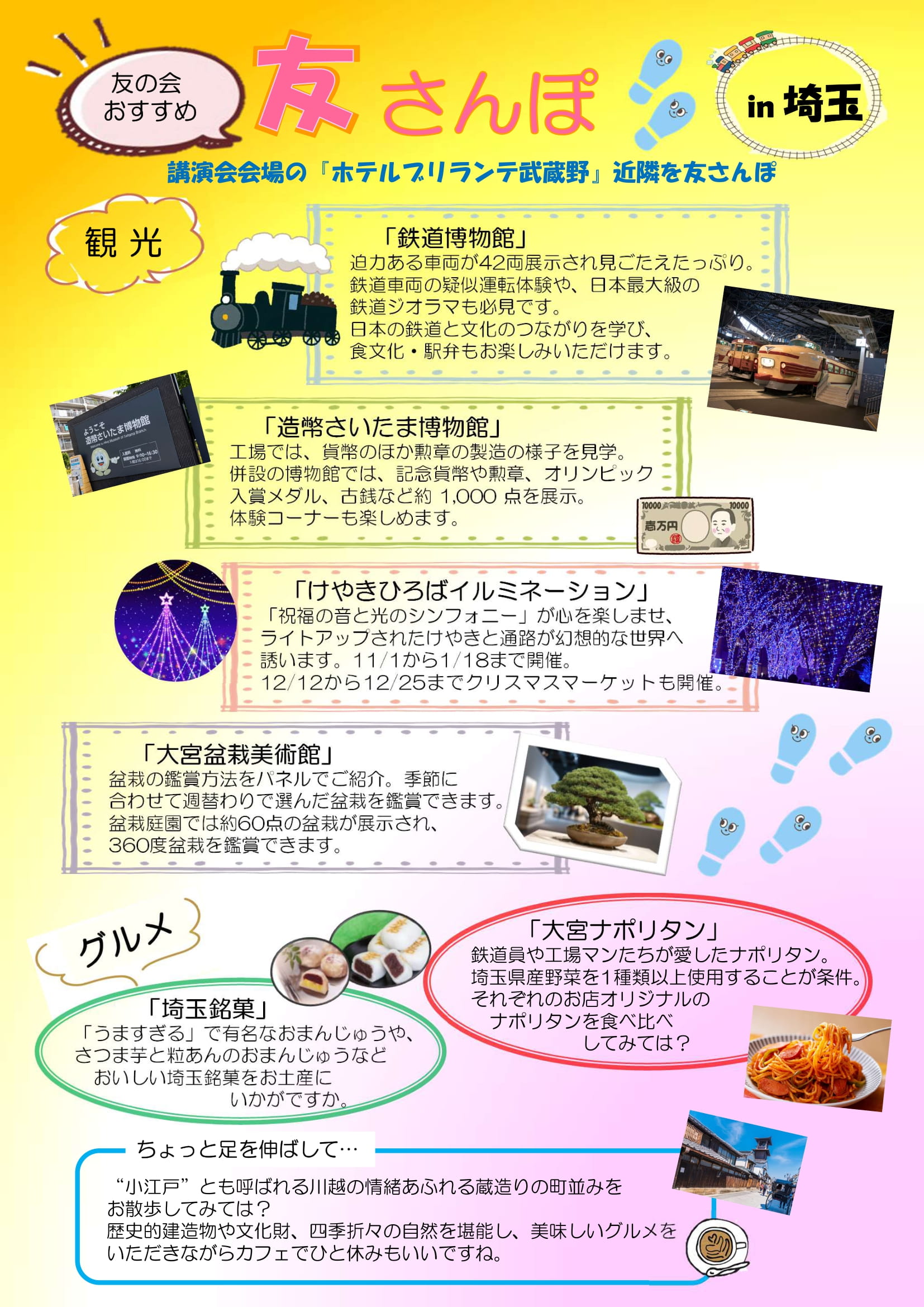 友の会スタッフおすすめの観光情報です!講演会後に散策してはいかがすか?